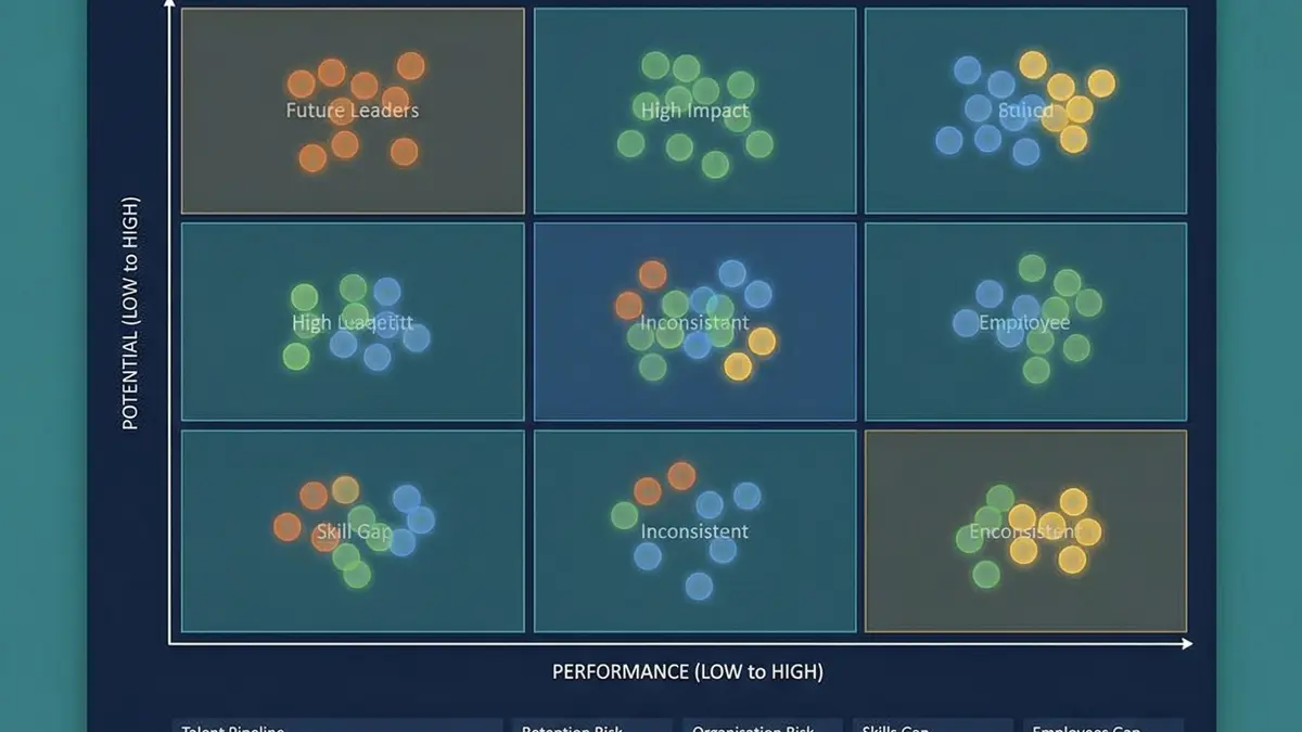 | 4-box grid | Performance × potential (simplified) | Smaller teams; early-stage talent processes | Less nuance; harder to differentiate mid-tier talent |